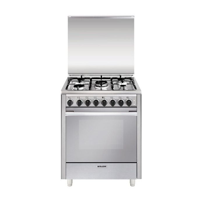 Glem Gas U765MI6. Tipo di prodotto: Piano cottura, Colore del prodotto: Acciaio inossidabile, Tipo di controllo: Manopola. Tipo di piano cottura: Gas, Numero totale elementi piano cottura: 5 Fornello(i), Numero di fornelli: 5 Fornello(i). Dimensione del forno: Media, Sorgente di alimentazione del forno: Elettrico, Capacità netta del forno: 64 L. Tipo di timer: Meccanico. Classe efficienza energetica: A, Consumo energetico (convenzionale): 0,98 kWh, Potenza aggregata (gas): 2320 W