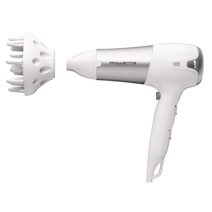 Rowenta CV5090F0 Powerline+ Asciugacapelli con Diffusore e Generatore di Ioni, Asciugatura Veloce, 2300 W, Argento/Bianco. Colore del prodotto: Argento, Bianco, Tipo di attaccatura: Anello di sospensione, Lunghezza cavo: 1,8 m. Potenza: 2300 W, Tensione di ingresso AC: 220-240 V