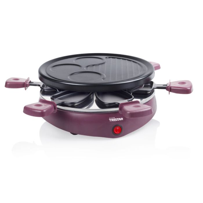 La Tristar RA-2991 è una pratica grill raclette con sei padelline gourmet e una piastra grill con tre stampi per preparare deliziose crepe, pancake o omelette. Questa versatile grill raclette è adatta a un massimo di sei persone.